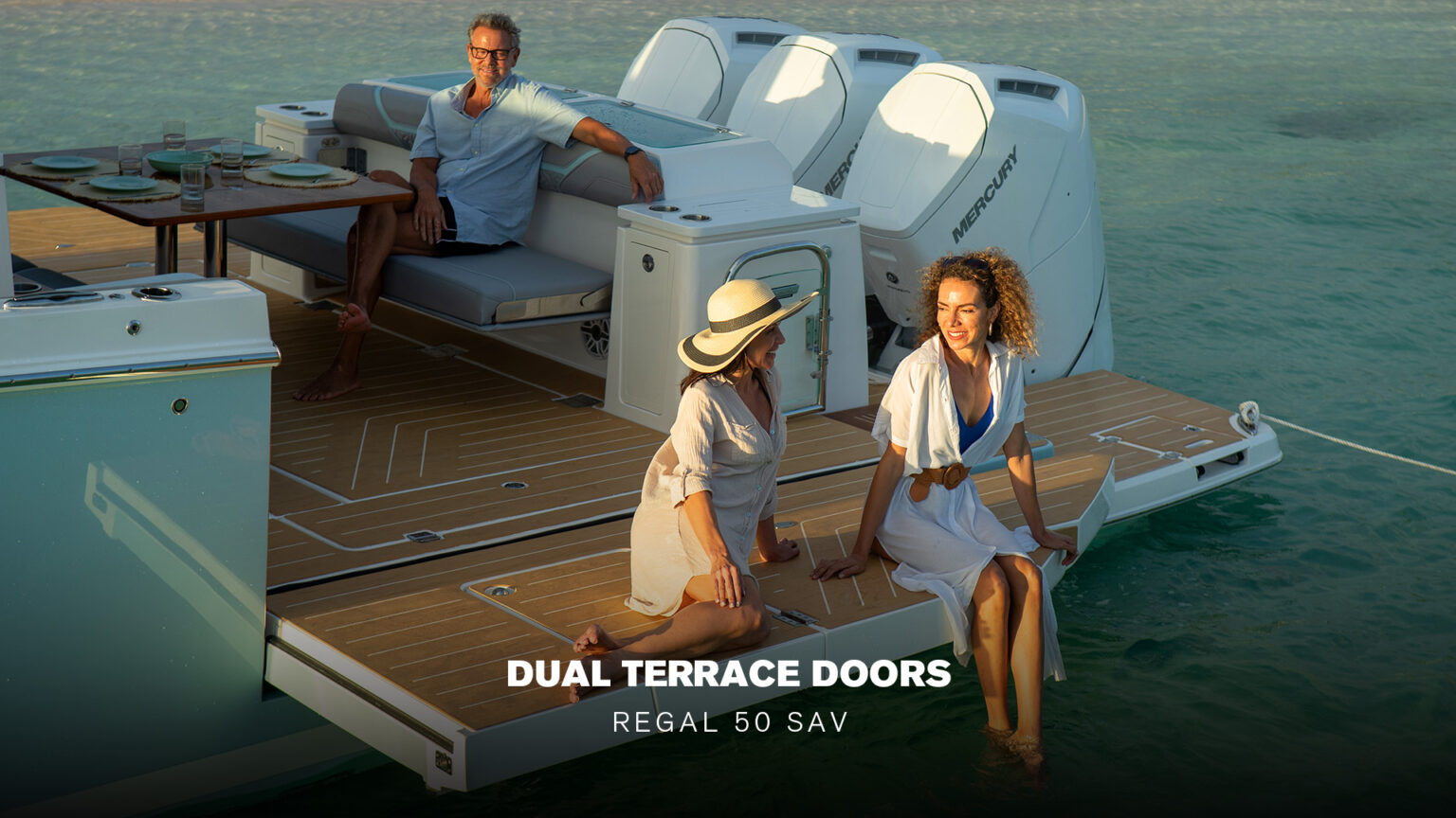 Welcome to the pinnacle of day boat innovation and luxury with Regal Boats’ flagship, the 50 SAV. Boasting an expansive 50-foot length overall and a 14′ 7″ beam, the 50 SAV is a marvel of design. Dual GarmRests, Dual opening Terrace Doors, Regal LivePower, and a spacious cabin open up new realms of possibilities, inviting you to immerse yourself in the grandeur of the open water. Step aboard and be enveloped in a world of luxurious spaciousness, where technology meets comfort, crafting an environment perfect for every adventure and every serene getaway.